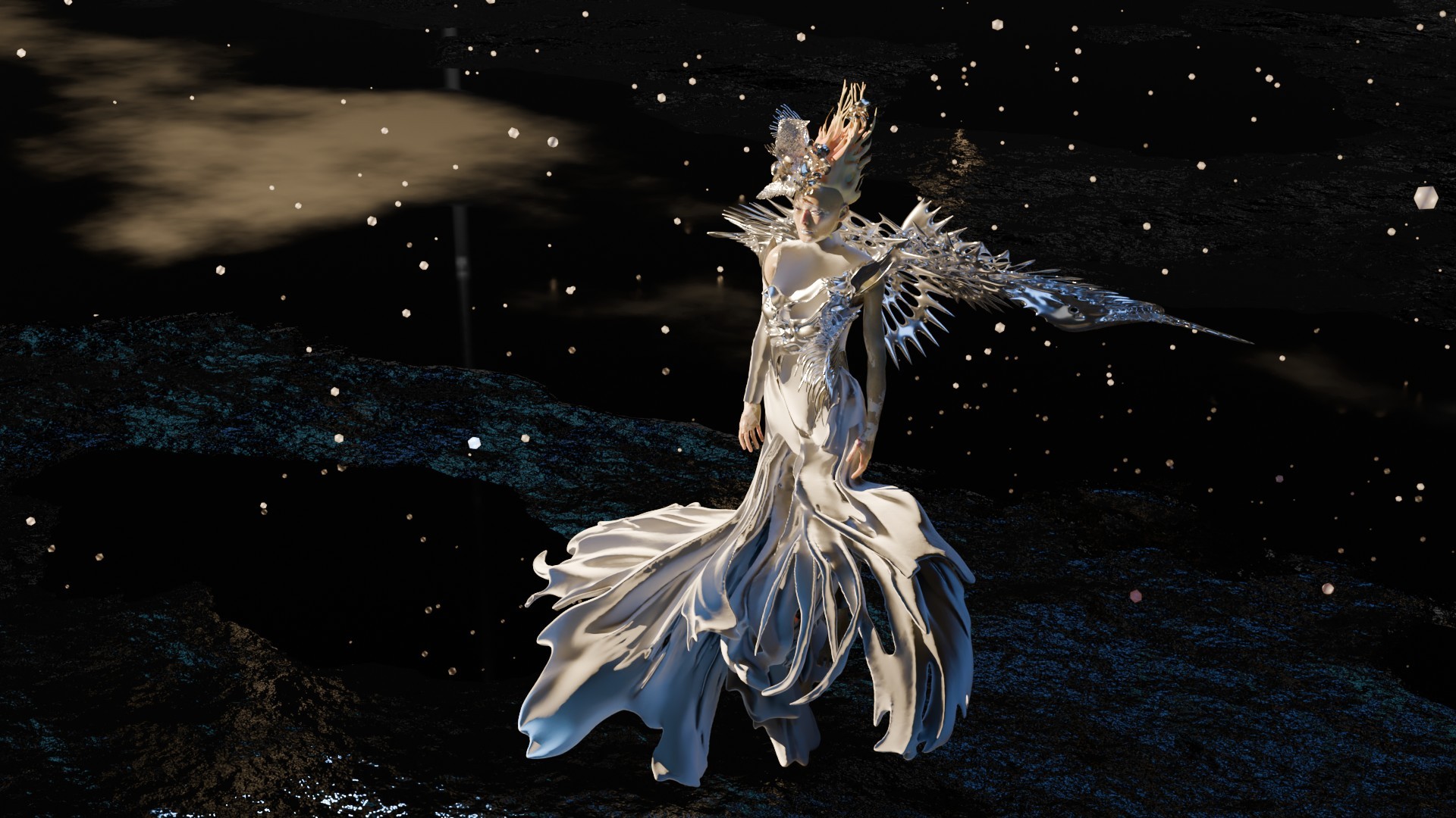 本季作品以“织羽人”为主题,既是对羽翼记忆的考古,也是对后人类飞翔的预言。织羽人穿梭数字时空,用算法编织失落的飞行记忆。每一片金属羽翼镌刻着古老飞行密码,光线穿透时折射出人类对飞翔的永恒渴望。