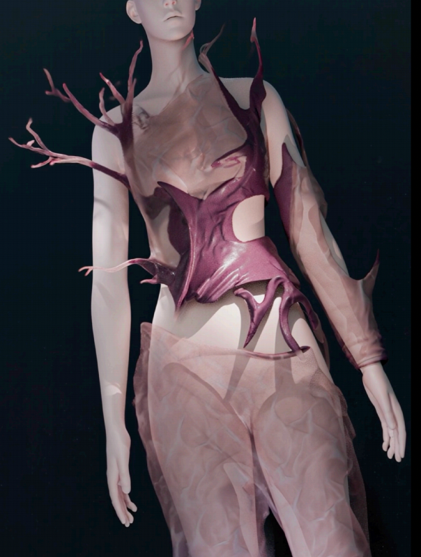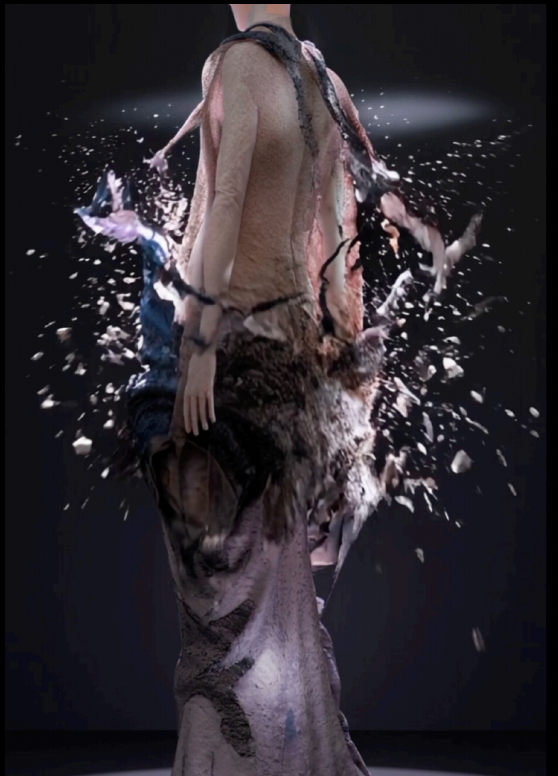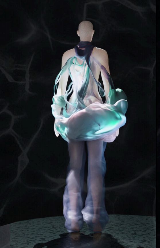 本次发以“Digital Scars-数字伤痕”为主题。该设计被细分为现实系列与虚拟系列两个部分,现实系列由CLO3D打版制作更接近于实体服装,虚拟系列由Blender、SP等软件联合制作出更脱离现实世界的服装。最终塑造出同一服装的两种形态:内心感受由现实系列中的含蓄表述动态演变为虚拟系列中勇敢表达的动态虚拟服装状态。